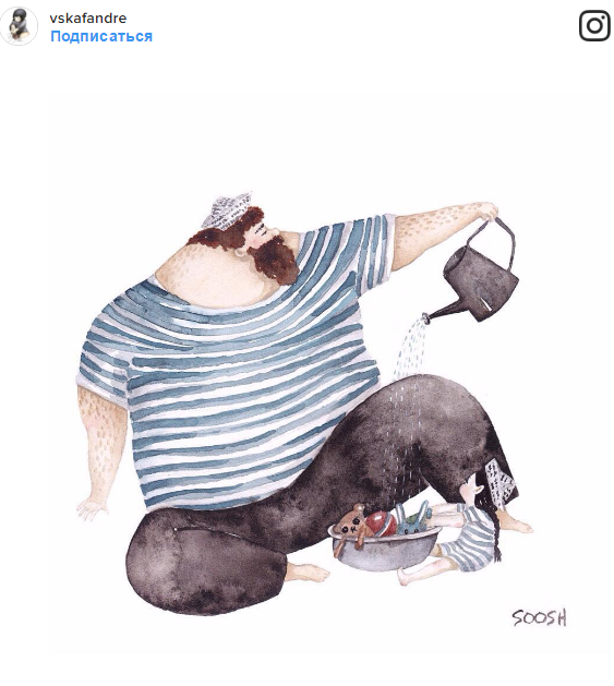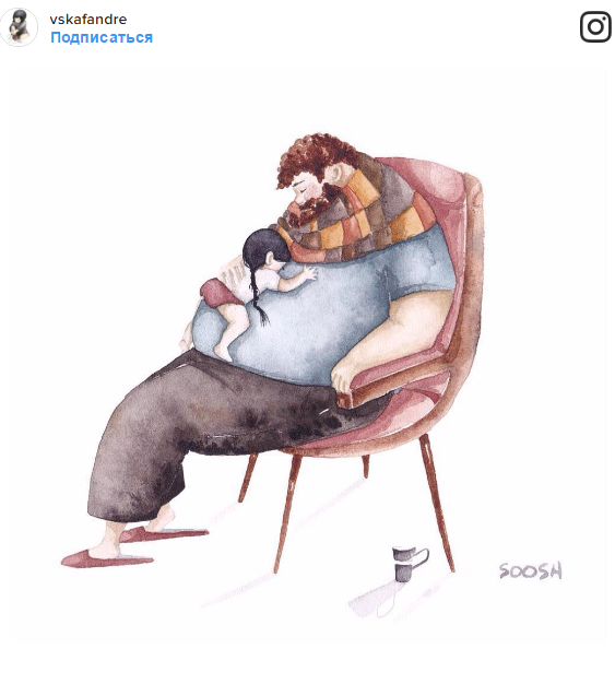 Между папами и дочками всегда особая связь. Иллюстратор Снежана Суш публикует в своем инстаграме акварельные рисунки, которые демонстрируют эту нежную любовь.