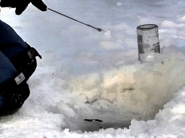 Но рыбок снимать – да сколько угодно! В итоге подошли мы к лунке, ветеран устроился поудобней и тут же, сходу, поймал пару рыбок! Когда он ловил первую, я был ошарашен,