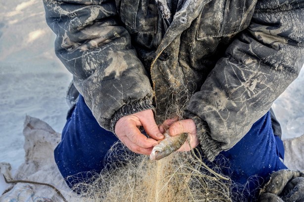 Утром второго дня мы поднялись рано. Это действительно рано, а не то рано, которое у нас дома: в лучшем случае после 12 часов. Приятной неожиданностью для меня лично стало обнаружение на площадке у ворот дома неизвестно как попавшего туда микроавтобуса. Как выяснилось, это товарищи приехали на рыбалку из Улан-Удэ. И их потешало то, что мы полдня убили на Провале. Оказывается, на данный момент рыбалка на Банке не в пример перспективней. Так что мы выехали с нашего бивуака и сладкой парочкой дунули на Банку. Кстати, о названиях: там их множество – и все обозначают какое-то конкретное место. Но как там в них ориентируются – для меня неразрешимая загадка, заняться разгадкой которой я даже не планирую. Правда, кое-какие нюансы мне таки запомнились. Допустим, то, что на Провале под полуметровым слоем льда еще полуметровый слой воды – и только потом земля (дно). А вот на Банке слой воды поскромней – всего сантиметров 20, и мне было сложно понимать все эти нюансы. И вот окунек пока не шел в более глубокое место, а предпочел более мелкое. Вот поди пойми эту рыбу!