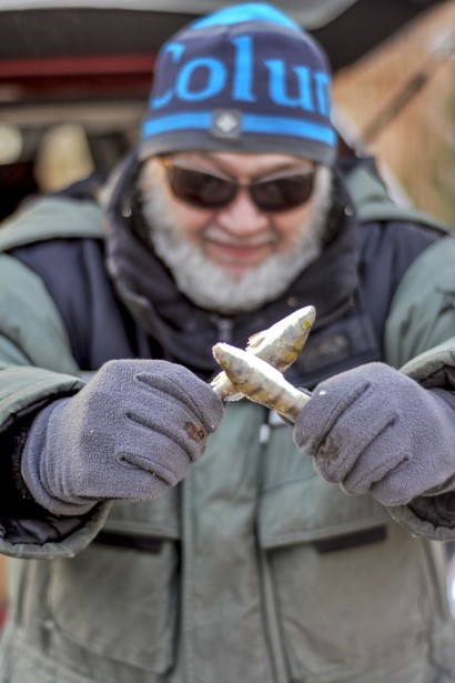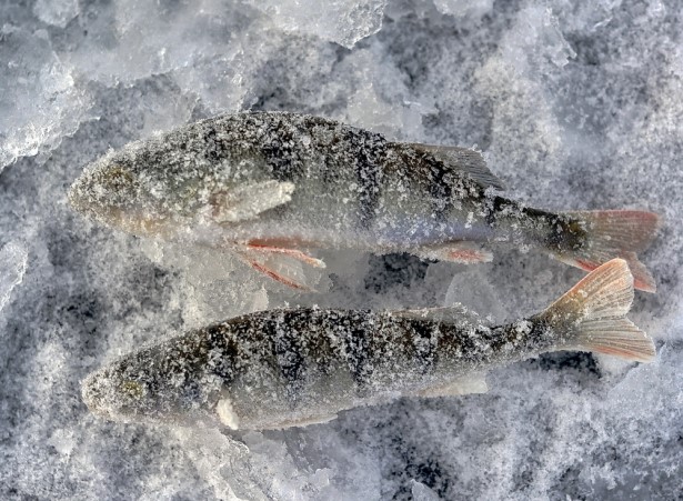 И вот он пришел – момент истины! Пока я начинал чистить первую же лунку, с одной стороны (слева) – артрит, а справа – артроз обняли меня нежно-нежно и спросили в один голос: забыл про нас? И ответить-то было нечего. Ну и чтобы было о чем поплакаться, пришло осознание, что одежду для вылазки я подобрал отнюдь не самую лучшую. И брюки, и ботинки не те – пропускали морозец, потому как тот был с ветром, и трудовые подвиги в работе сегодня были не для меня. Ну, то есть я выскакивал на мороз, чистил лунки – и бегом обратно в машину. В которой, на удивление, не дуло. По итогу у меня был один вопрос: когда же это все кончится? И я вообще не понимал смысла пребывания в нонкомфорте. Ладно бы – рыбалка перла, а то на моих глазах мой товарищ выудил из лунки... ну как бы не обидеть сие существо? Ну, пусть будет – мелочь, и, как оказалось, без «моих глаз» – еще одного такого же, даже помельче.