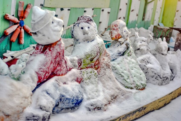 Потом я постановил, что местный снеговик множественного числа, стилизованный под сказку о репке, просто заслуживает немедленного запечатления!