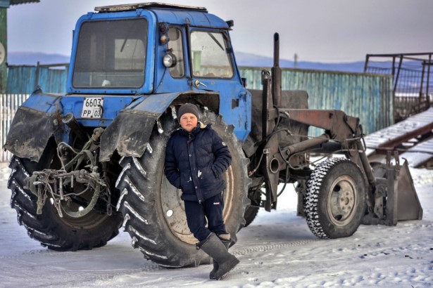 Пройдясь до конца улицы, я увидел разные для себя интересные вещи. Но все показывать долго, ограничусь несколькими. В конце стоял паренек, опершись на столб. Я предложил сняться, тем паче там рядом был его отец. После такого нехилого допроса – кто, что, зачем и куда, – добро было получено. Но теперь уж я типа закуражился и предложил Парню поменять дислокацию: уж слишком неинтересен, нефотогеничен был столб – простая бетонная палка. А вот трактор – куда красивей, да к тому же напоминал о песне «Прокати нас, Петруша, на тракторе». Жаль, не спросил имя у красавца.