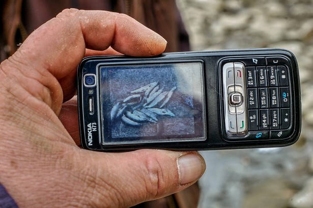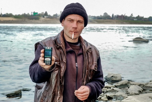 как наш товарищ по рыбалке Алексей показывает снятый на телефон улов