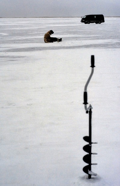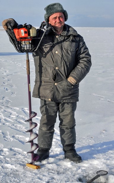 Он поймал и третью, но, желая расположить удобно для попадания в кадр, упустил ее. Общаться человек явно не хотел, а я – человек-трындобол, и посему, после недолгого размышления, пришлось менять диспозицию. На небольшом удалении были замечены еще пара человек. И я не мог обойти их стороной. Самое интересное, что мне у них очень понравилось, – это буравчик с моторчиком. Может, оно как-то умней называется – типа пешня или еще как, но мне, как неграмотному, простительно.