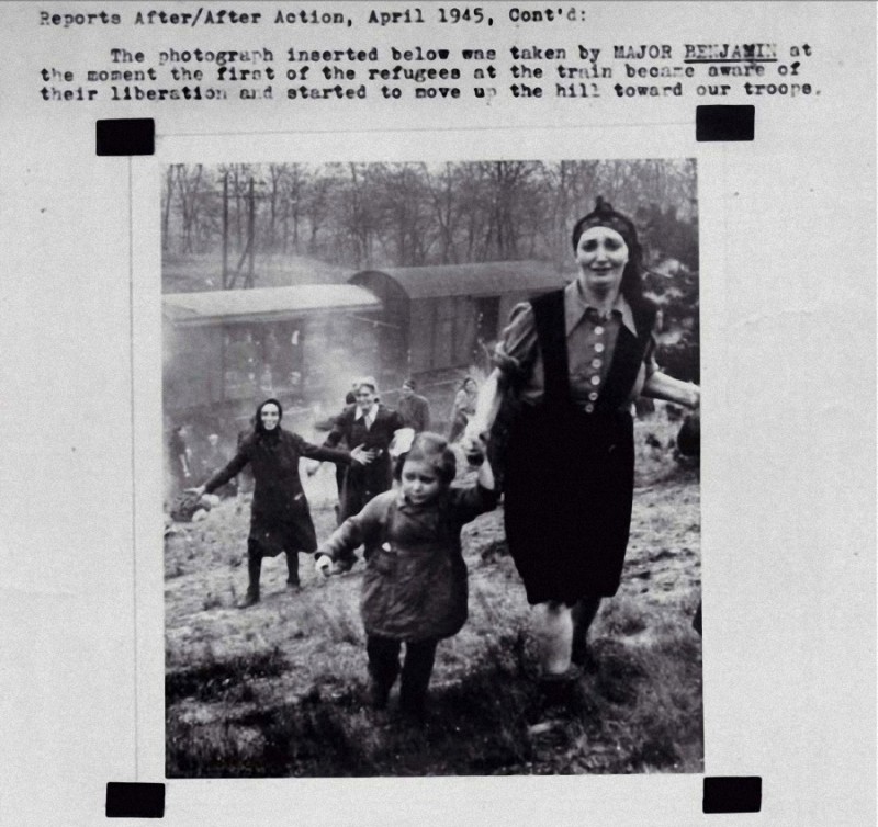 Еврейские заключенные в момент их освобождения из лагеря, 1945 год