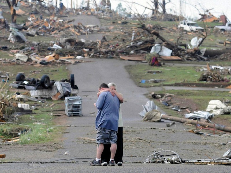 Мать и сын в Конкорде, Алабама, около своего дома, который был полностью разрушен торнадо. Апрель, 2011 год