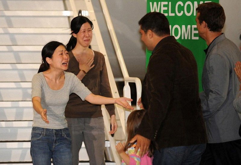 Журналисты Юна Ли и Лора Линг, которые были арестованы в Северной Корее и приговорены к каторжным работам на 12 лет, воссоединены с их семьями в Калифорнии после успешного дипломатического вмешательства США